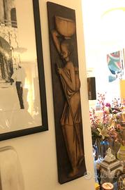 Statue africane 25 cad in coppia 40 euro e bassorilievo legno africa anni 70 euro 35.