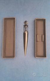 Lungo 20 cm, completo della sua scatola originale rivestita in stoffa. Un vero pezzo da collezione vintage, ideale sia come oggetto d’uso che come elemento decorativo unico e ricercato.