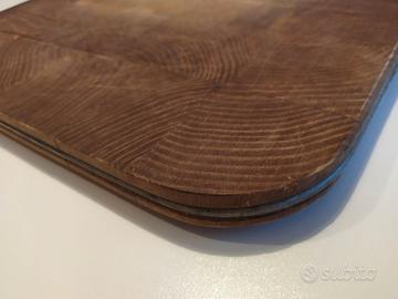 Tagliere - ceppo in legno molto robusto tenuto tutto intorno da un rinforzo in ferro. Misure lunghezza cm 41 larghezza cm 36 e altezza cm 3