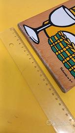 Tagliere in solido legno, con disegno fantasia tema cucina, sebbene usato nel lato dove si č lavorato per tagliare si presenta ancora ben piano - larghezza 17 cm, altezza 34,5 - buono stato - come da foto - eventuale spedizione ben protetta - [qw 9644] -