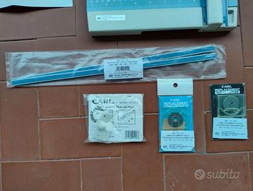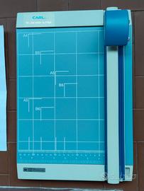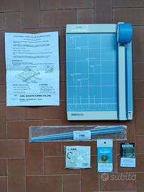 La taglierina a lama rotante presenta un design originale ed è un accessorio per lavori di taglio. Include riferimenti ai formati UNI sul piano di lavoro e un sistema di bloccaggio fogli con pressino, che facilita l'ottenimento di tagli precisi e puliti. Inoltre, consente tagli continui, tratteggiati e per cordonatura