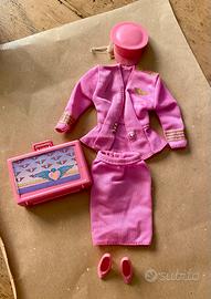 Barbie pilota cin outfit originsle 1989 Composto da giacca, gonna, scarpe, cappello e gonna per tempo libero. Accessoriato da borsa/valigetta originale.