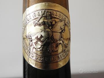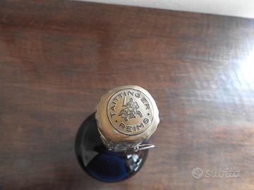 Antica bottiglia di champagne da collezione Taittinger Comtes de Champagne 1976 Blanc de Bancs uve chardonnay rinvenuta in una cantina di una casa di campagna.La bottiglia è integra, con la capsula perfettamente sigillata e l'etichetta leggermente rovinata dal tempo ma ben leggibile. il formato della bottiglia è da 0,75 l, GR 12% Vol. il livello di riempimento è alla base del collo.