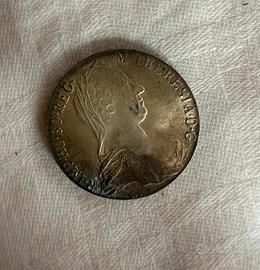 Moneta autentica in argento , data 1780 in buone condizioni con dettagli ben visiabili . Presenta patina naturale ,non pulita .perfetta per collezionisti . Peso 28g