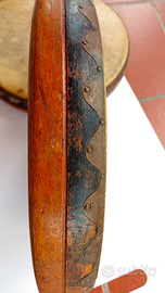 Svendo tutto!Per collezionismo, antiquariato,rarissima coppia di tamburelli..veri cimeli da museo che testimoniano l'arte musicale e dell'antico gioco palla.Ideale per feste di paese , rivisitazione storica etc.Strumento in legno, pelle,e bordato da decori in lamina d'ottone.