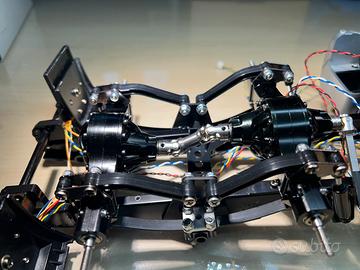 La cabina è stata verniciata di nero, con diversi accessori a corredo, le due scatole differenziali sono metalliche tutto cuscinettato, gia prese le barre led per i fari anteriori compreso della centralina Tamiya luci e suoni solo quella costa circa 400€ e altri accessori ancora !