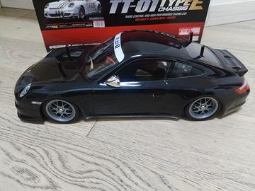 Modello radiocomandato Tamiya TT-01 Type E in scala 1:10, con carrozzeria Porsche 911 GT3 Cup VIP 2008.