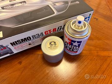 Vendo kit modellismo Tamiya NISMO R34 GT-R Z-tune, parte della serie Tamiya 1/24 SPORTS CAR SERIES, modello NO.282. Tutte le parti sono ancora sigillate. Completo di decal e sticker originali. Regalo anche la vernice spray necessaria per la carrozzeria, bomboletta nuova mai usata. Mancano le istruzioni, che sono però fortunatamente reperibili online.
