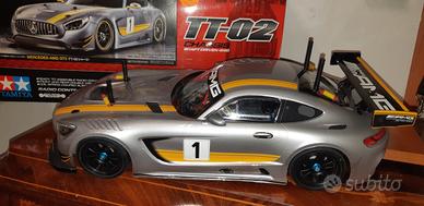 vendo tamyha tt 02 Mercedes amg gt usata 1 volta completa di esc +motore con ventolino raffredamento modello completamente cuscinettato con ricambi originali ammortizzatori alluminio e salvaservo vpro anodizzato servo savox 1258 batteria lipo 5000 e radio 2.4 piu carrozzeria bmw m3 istruzioni e scatola originale .