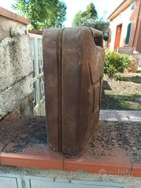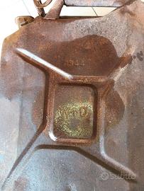 Tanica carburante inglese Jerrycan II guerra mondiale Tanica militare dell'esercito inglese utilizzata per trasporto carburante o acqua, realizzata in ferro, risalente alla seconda guerra mondiale Condizioni come da foto con patina d'epoca e qualche piccola ammaccatura ma ancora in forma. Su un lato si intravede la scritta 1944, misura circa cm.35x16x48 di altezza per una capacità circa 25 litri, con tappo di chiusura a scatto. Ottima per rievocazioni storiche oppure per collezionisti di militaria della II WW. Ritiro di persona a Pistoia oppure posso spedire con pacco postale ordinario tracciabile. #idearegalo