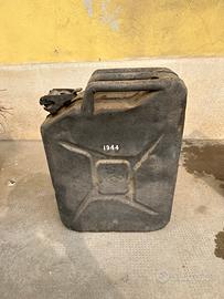Vendo nr 4 rarissima tanica militare da 20 litri (modello Jerry Can) originale del 1944, risalente al periodo della Seconda Guerra Mondiale. L’oggetto presenta la punzonatura dell’anno di fabbricazione ben visibile e i classici marchi di assegnazione militare. È un pezzo autentico, non una riproduzione moderna, perfetto per: * Collezionismo di militaria e veicoli d'epoca (Jeep Willys, camion storici). * Arredamento Vintage/Industrial (ideale per creare lampade, mobili bar o come pezzo da esposizione in officine e garage). Dettagli: * Capacità: 20 Litri. * Stato: Strutturalmente solida, con una bellissima patina originale data dal tempo. Presenta i segni tipici dell'uso bellico che ne certificano l'autenticità. * Caratteristiche: Chiusura a scatto perfettamente funzionante e maniglia tripla originale. Disponibile per ritiro a mano zona vicenza Prezzo euro 70 ciascuna