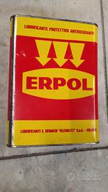 Rara e originale tanica in latta litografata REINACH “Oleoblitz” S.p.A. Milano, per oli e grassi industriali.