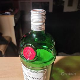 Bottiglia vuota di Tanqueray London Dry Gin.