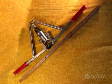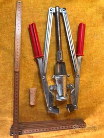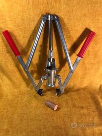 Utensile in ferro zincato e PVC per tappare, chiudere con tappi di sughero le bottiglie in maniera manuale. Sul cono dove si inserisce il tappo compare la scritta brev. made italy, l’attrezzo costituito da coppia di manici per la pressione con sistema di stantuffo risale alla seconda metà del 900, come da foto alt. Cm.34.