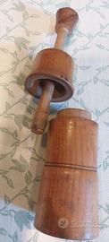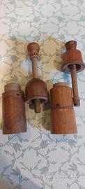 Coppia di tappatrici in legno per bottiglie di vino , con inseritore di tappo di sughero e albero in legno.