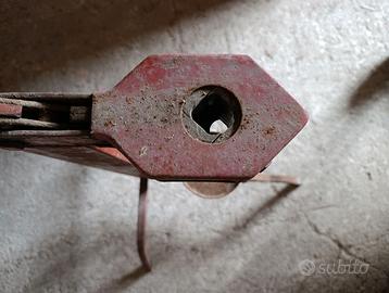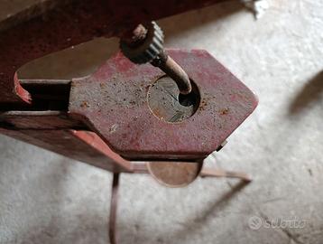 TAPPATRICE MANUALE A COLONNA PER TAPPI DI SUGHERO 75X70cm H 90cm. Struttura in metallo verniciato rosso. Base stabile a tre gambe. Leva di azionamento. Piattaforma per bottiglia regolabile in altezza. Perfettamente funzionante. Ottima anche come decorazione per taverna ecc. Prezzo trattabile. Ritiro a Gualdo Tadino. Spedizione 33€