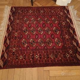 Vendo questo tappeto interamente annodato a mano,qualità Bokara misure 105x101 cm ,provanienza Russia,con questo termine genetico s'indica una vasta produzione di tappeti tutti di lana di buona qualità, realizzati dai nomadi turcomanni d'origine Tekke', Yomut, Ersari, Salor, Kerki.in perfette condizioni proviene da una collezione di famiglia, l'ultima foto è il rovescio,