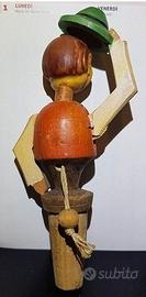 Il Personaggio con Cappello: azionando la cordicella posteriore, il braccio si solleva in un saluto, alzando il cappellino e inclinando la testa.