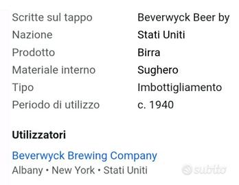 Rarissimo tappo a corona degli anni "40 se no conoscono ad oggi solo 2 esemplari. Stati Uniti retro in sughero buona conservazione