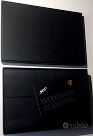 Raro bella targa/quadretto originale della Lamborghini per i suoi 50 anni, con fibra di carbonio attorno all'immagine centrale con Miura e Aventador; oggetto nuovo in scatola.