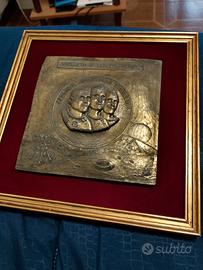 targa commemorativa Apollo 11, anno 1969, bassorilievo in metallo, articolo vintage, completo di cornice.