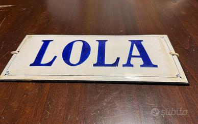 Targa con nome Lola in ferro smaltato proveniente da una casa chiusa. L’artista che le ha realizzate è N. Artale. La firma si trova nell’unica che non vendo