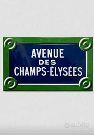 Vendo splendida targa decorativa “Avenue des Champs-Élysées”, ispirata alle iconiche insegne stradali di Parigi.