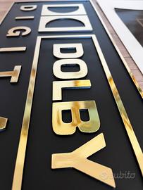 Come da titolo vendesi targa Dolby Digital, molto bella, color nero e oro, materiale plastica, nuova ancora imbustata , completa del proprio adesivo sempre Dolby, datati circa primi anni 2000 . Oggetto molto bello per uso collezionistico e per abbellire studi o regie. Misure 53,5 X 21,5 Cedesi a euro 80 con formula visto e piaciuto come da trattativa tra privati. Spedizione con TuttoSubito Astenersi perditempo.