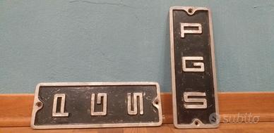 Targhe in alluminio PGS, fabbrica di carrelli elevatori, anni '60, scritta in verticale, misura 28x10, 5 euro al pezzo Targa, tabella insegna, vintage, epoca , industrial design, industriale.