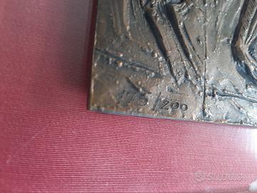 Il bassorilievo misura 16 x 23,5 x 0,4 cm. ed è montato su lastra in plexiglass per essere anche appeso a parete.