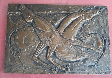 Scultura bassorilievo in bronzo di Bruno Cassinari raffigurante dei cavalli, anni '70, firmata Cassinari in basso a destra e numerata 175/200 in basso a sinistra.
