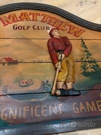Targa in legno vintage “St. Matthew Golf Club” – figura 3D golfista – decoro retrò
