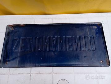 VECCHIA TARGA SMALTATA . UTILIZZATA NELLE LINEE AT DELLE FERROVIE. MISURE cm 54x24.
