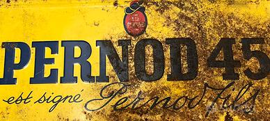 Targa insegna pubblicitaria d’epoca Pernod 45 Est signé Pernod Fils dimensioni cm 37 x 16,5 Condizioni: segni d’epoca, vedi foto