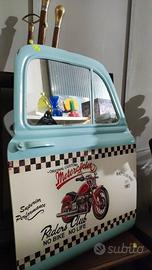 69 euro. Vendo targa insegna vintage a forma di portiera fiat 500 con specchio, nuova, misure 83x6o cm.