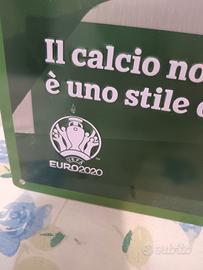 Cerchi un pezzo unico per la tua "Man Cave", il tuo bar o la tua collezione sportiva? In vendita questa splendida targa in metallo (tinplate) originale prodotta da Heineken in occasione di UEFA EURO 2020. Non è la solita insegna pubblicitaria, ma un vero oggetto di design che celebra la passione per il calcio. ✨ Caratteristiche Principali: Messaggio Iconico: "Il calcio non è un gioco, è uno stile di vita." Grafica Artistica: Design d'avanguardia che rappresenta in modo astratto e dinamico un portiere in azione. Qualità Premium: Realizzata in metallo serigrafato con scritte e loghi in rilievo (embossed), che donano profondità e un tocco di classe al tatto. Dimensioni Generose: Circa 60 x 40 cm (come visibile dalle foto con metro), perfetta per riempire una parete con stile. Condizioni: Ottime, come da foto. Presenta ancora l'etichetta originale sul retro che ne attesta l'autenticità (Prodotto da Fiori Paolo S.p.A. per Heineken Italia). Installazione Facile: Già dotata di piccoli fori agli angoli per essere appesa immediatamente. Un pezzo immancabile per i tifosi della Nazionale e per chiunque abbia amato l'atmosfera magica degli Europei vinti dall'Italia!