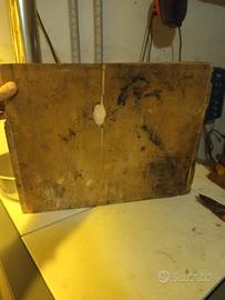 Per veri cultori del ruggine-core e del rotten industriale propongo vecchia tavola/coperchio in legno di cassa tedesca con scritta ancora leggibile “Werkzeug … Gew. 25 kg”.