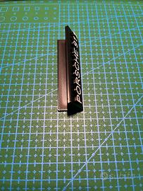 Targhe per scopo espositivo personalizzabili stampate con stampanti 3d. La base e' di colore nero mentre le lettere vengono colorate di bianco. Il prezzo di ciascuna targa e' di 2 euro al pezzo esclusa la spedizione. Nel caso in cui si vogliano piu' di 15 targhe personalizzate si può richiedere in privato un preventivo. La targa in questione ha una misura di 70 mm x 20 mm x 18 mm