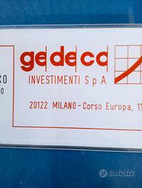 targa plexiglass incisa con pantografo manuale anni 80 per GEDECO INVESTIMENTI SPA cm 35x18.