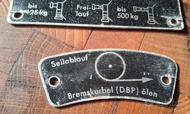 Targhette identificative per verricello militare, in alluminio, misura rettangolo 72 x 106 mm. Anno 1964. Prezzo di 5 euro riferito al lotto di 3 pezzi ( come in foto 1)