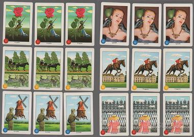 36 carte piccole (12 disegni, ogni disegno ha 3 carte)