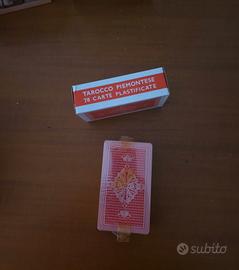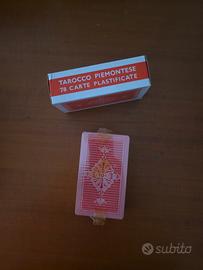 Il Tarocco Piemontese si compone di 78 carte (22 Arcani maggiori e 56 Arcani minori) realizzate in cartoncino. Astuccio blu/rosso. Formato mm 62x106,5