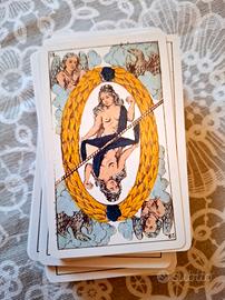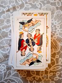 Riproduzione fedele di un tarocco del 1860 creato a Parigi. 78 carte ,22 arcani maggiori e 56 arcani minori. Prodotto da Naipes Heraclio Fournier. Stile marsigliese con figura doppia. Mazzo nuovo in perfetto stato come la scatola. #tarocchijgaudais #tarocchivintage #tarocchinuovi