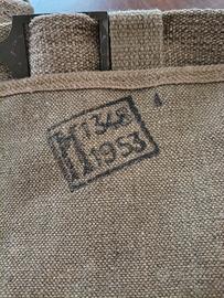 Tascapane zainetto militare Vintage porta il timbro 1953, in juta perfettamente conservato senza strappi né tarme.
