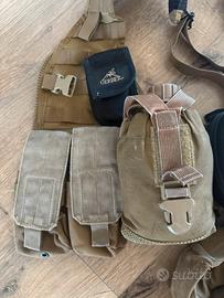 Ormai raro setup da collezione. Ottimo anche per softair Loadout USMC reenactment, da collezione. FLC fully loaded eagle industries, Coyote Brown - 2 X double m4 pouch - 2X frag pouch - Canteen pouch - mre pouch - spent mag pouch - acog pouch - ifak - ess pouch - gerber pouch