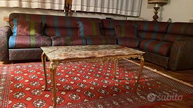vintage del XX secolo piano in marmo onice, struttura in metallo dorato