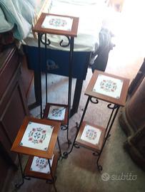 3pz. tavolini di misure diverse di ferro battuto con piani a mattonella in buono stato info email