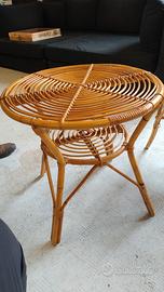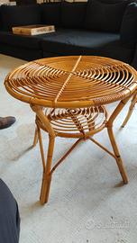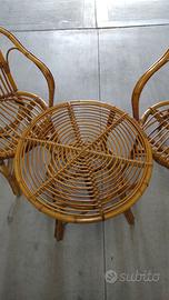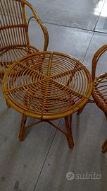 Tavolino da caffè e due poltrone poltroncine in vimini rattan diametro tavolino 60cm, altezza circa 55 cm anni '70 vintage ottime condizioni per l'età del set perfette per un giardino o un terrazzo o anche per un piccolo balconcino!
