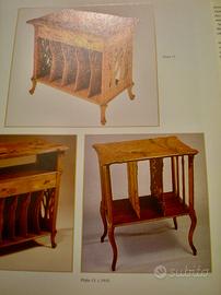 Tavolino da musica firmato Gallè, in legno di noce biondo intagliato e intarsiato con essenze diverse , di smaccato gusto art nouveau.