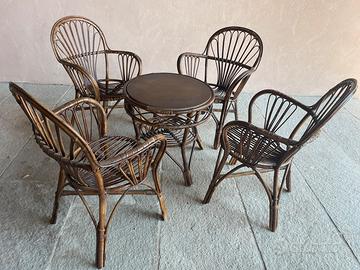 tavolino e sedie in vimini midollino d’epoca